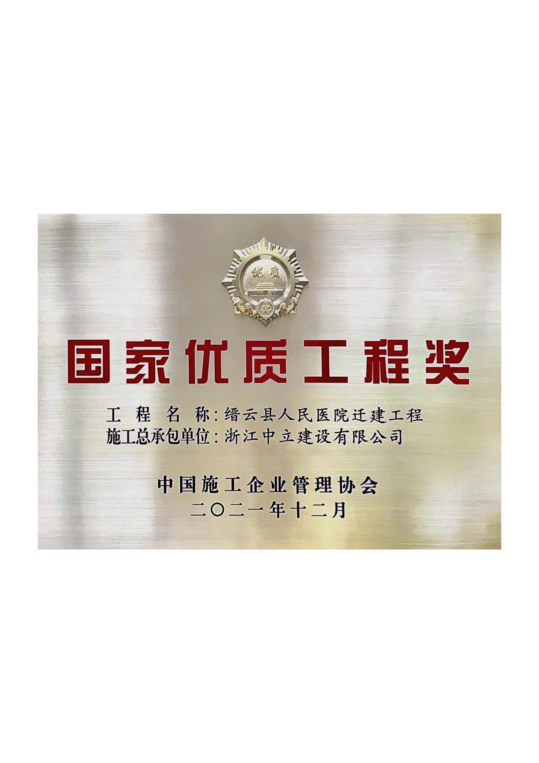 國家優質工程獎牌