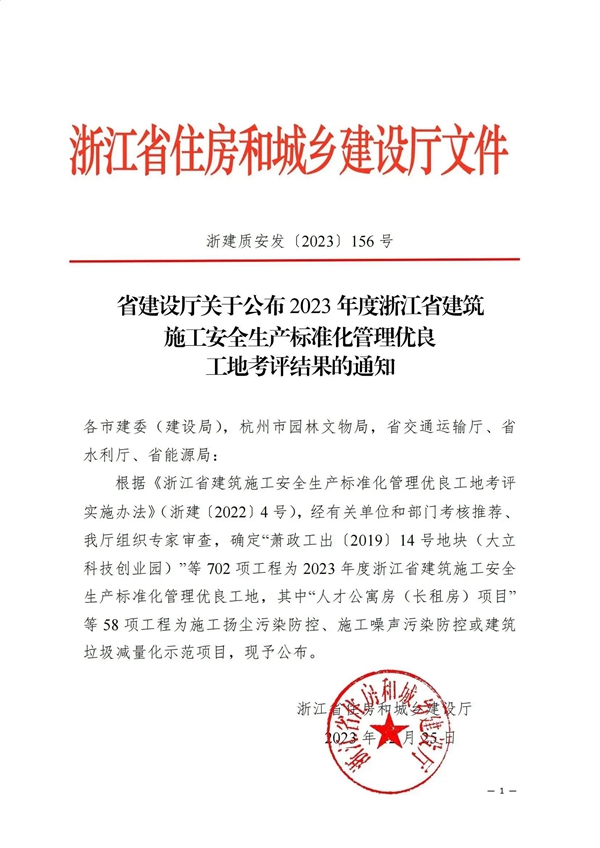 浙江中立建設有限公司在2023年度“建筑施工安全生產標準化管理優良工地”評選活動中,獲得了豐碩成果。1個項目榮獲全國建設工程項目施工工地安全生產標準化學習交流項目;7個項目榮獲浙江省建筑施工安全生產標準化管理優良工地,其中1個項目被評為“建筑垃圾減量化”示范項目;16個項目榮獲麗水市建筑施工安全生產標準化管理優良工地。
